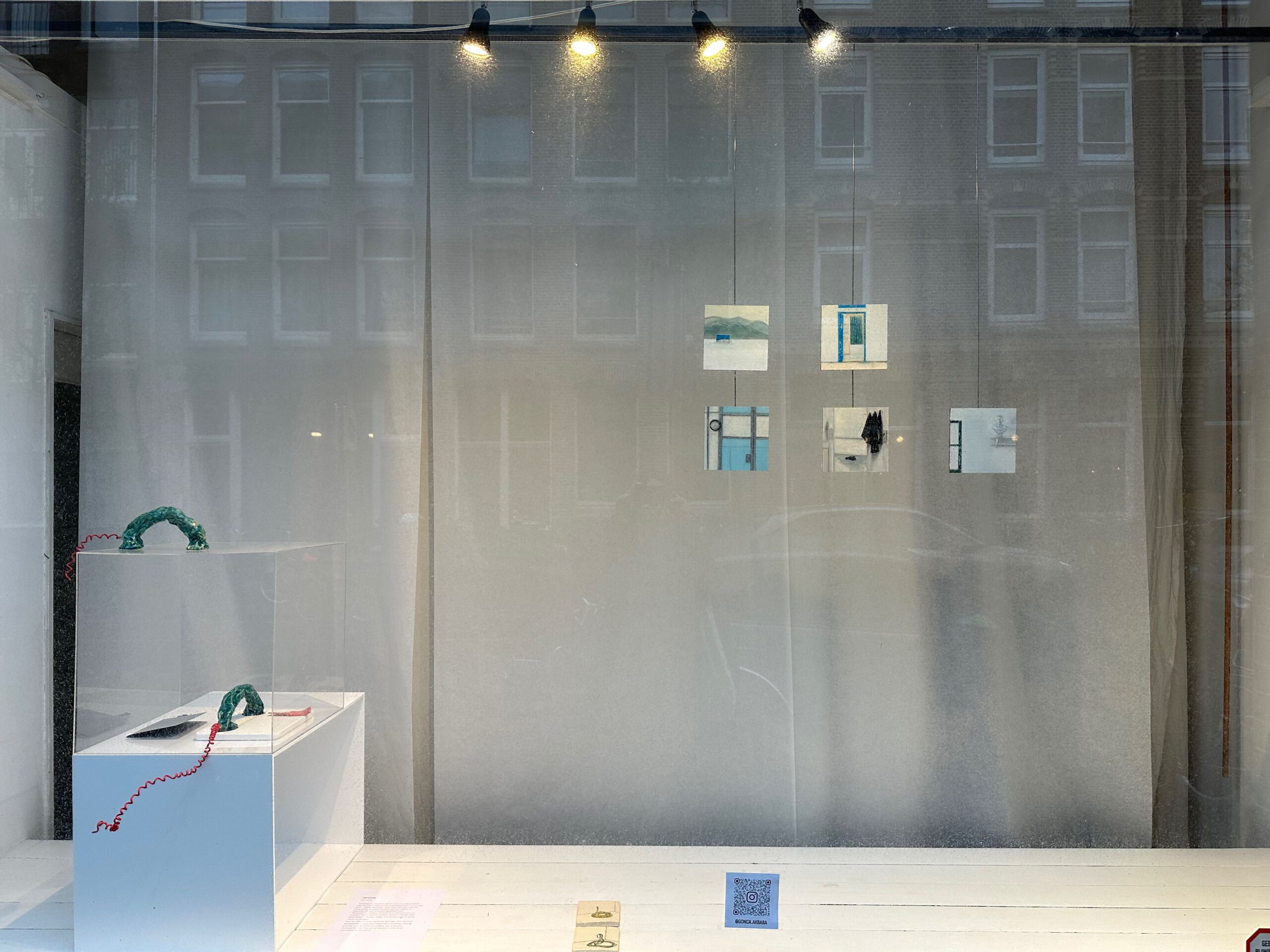 Together with Ester Eva, I worked on the details of my exhibition. She also put me in touch with a curator to discuss the exhibition’s layout. It was a wonderful and educational experience. After the residency, I was given the opportunity to organize a solo exhibition at another location in De Pijp. There, I display my work in a large window. It is a challenging process to sketch out an exhibition for a window and then bring it to life. At the same time, it’s a wonderful idea that passersby can walk by at any time and view the work.
